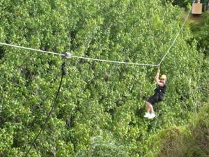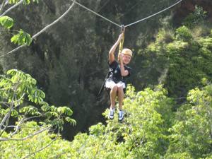 Fri. – Had a great sandwich from a grocery store on the north shore at Princeville. Then Riley and I dropped Jeremy and Bob off to play golf at the Princeville resort – Prince course. Riley and I stopped for him to get shaved ice and I shopped around a little then we drove to the west end of the road and then came back for our adventure, ziplining. It was a blast!! Would do that again in a heartbeat.